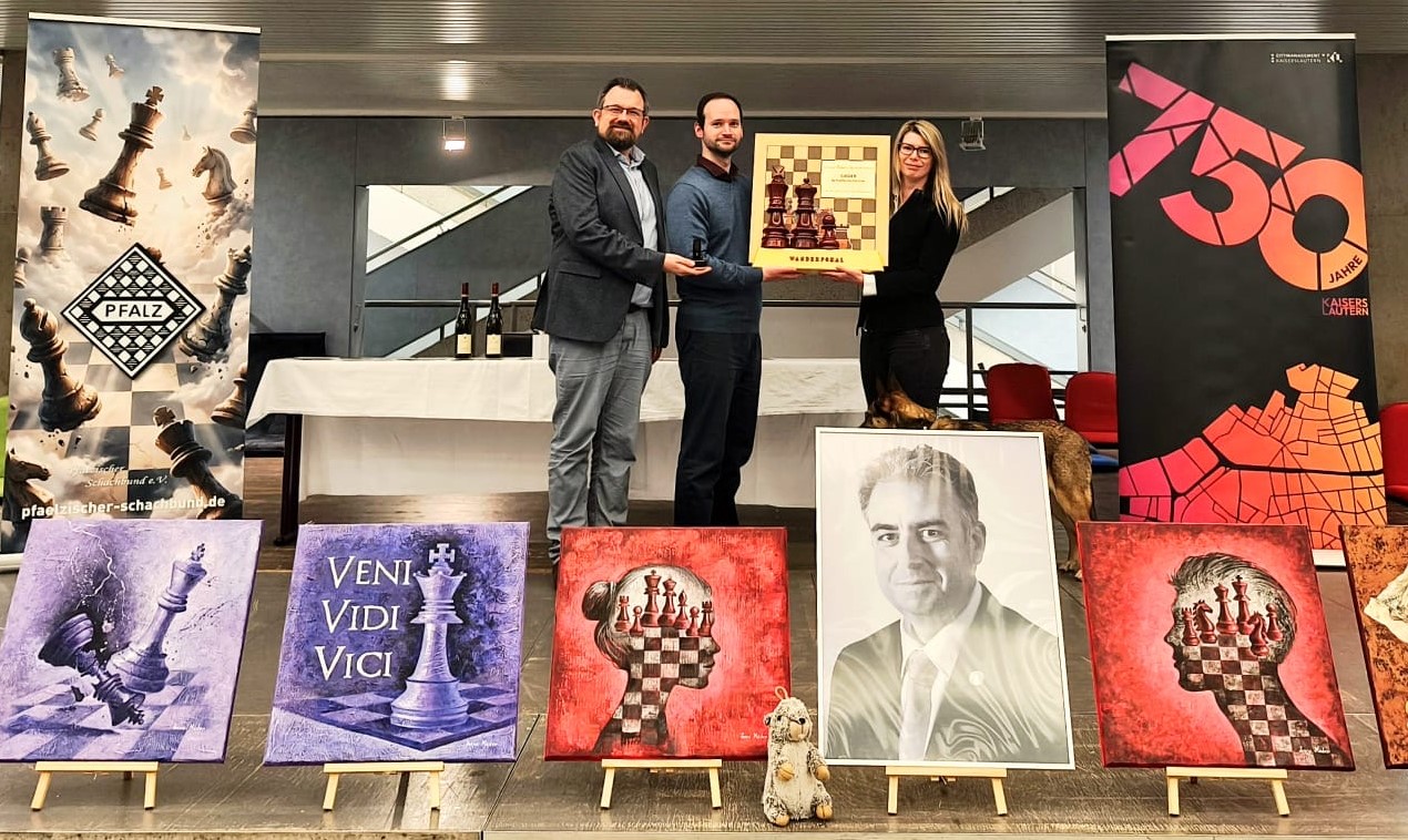 Hier wird wieder der Pfalzmeister ermittelt. DWZ Favorit ist Martin Heider (2416, SV Worms 1878), dahinter folgen der Frankenthaler FM Arkadi Syrov (2311, Pfalzmeister 2024 und 2025) und David Musiolik (2260, SV Worms 1878). Gleich in Runde 1 kam es zum Spitzenkampf Heider gegen Syrov. Beide schafften recht knapp die Zeitkontrolle, nach Zug 40 zeigte der Rechner noch 0,0. Je zwei Türme plus Bauern hieß es im Endspiel, wobei Heider zwei Freibuern auf der b- und c-Limie vereint hatte. Am Ende war es aber dann Heiders g-Bauer, der unaufhaltsam der achten Reihe zustrebte. Nach 56 Zügen 1:0. In Runde 2 folgte dann gleich ein weiterer wichtiger Sieg gegen Musiolik. Eine großartige Partie, in der David Martin immer wieder zu hervorragenden Zügen zwingen musste – hier zum Nachspielen.